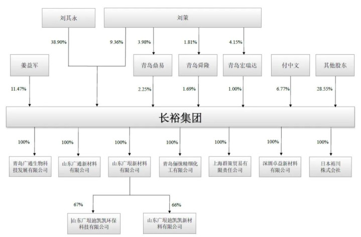 IPO前,刘其永持有长裕集团38.9%股权,刘策直接持有长裕集团9.36%股权,并担任青岛鼎易投资合伙企业(有限合伙)、青岛舜隆投资合伙企业(有限合伙)、青岛宏瑞达投资合伙企业(有限合伙)执行事务合伙人,间接控制上述三家合伙企业持有的长裕集团4.94%股权。